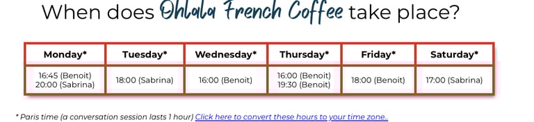 Maintenant, je vais rentrer dans les détails juteux du Ohlala French Coffee et te montrer exactement comment ce coaching de groupe en ligne peut t’aider à parler français couramment avec des natifs sur n’importe quel type de conversation (même complexe).